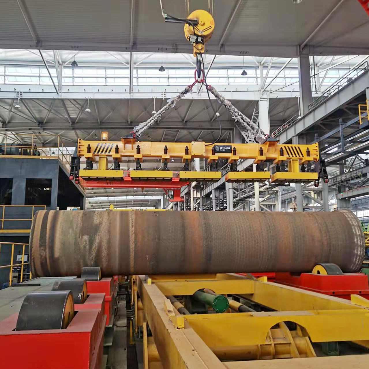 千豪電永磁吊具在吊鋼板,鋼管,鑄管等導(dǎo)磁工件上取得廣大顧客的認(rèn)可與返購。使用電永磁吊具吊裝鋼管及鑄管圓形導(dǎo)磁工件,只需要吸附一部分接觸面即可吸吊起8噸、10噸、16噸,32噸.