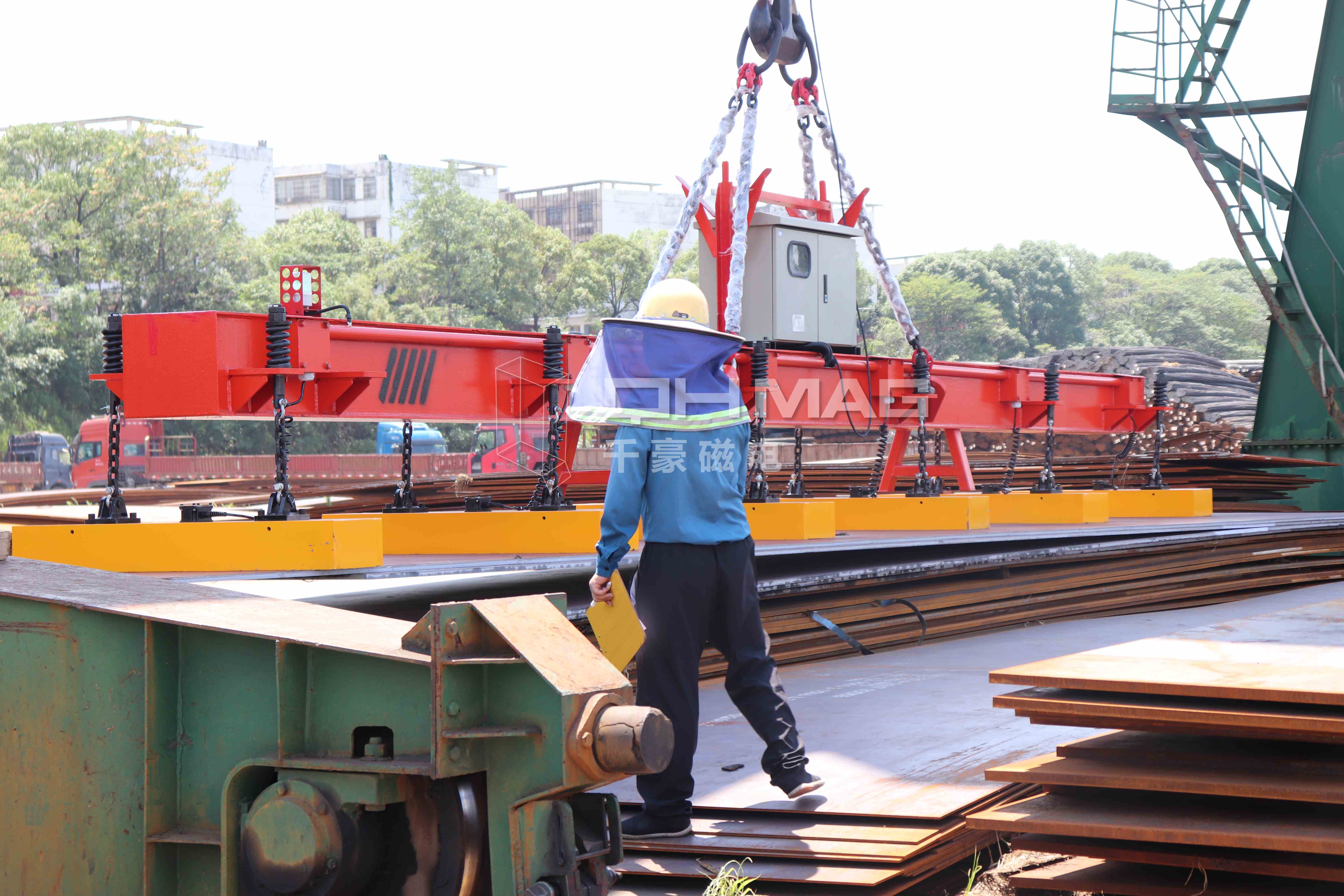 千豪磁電鋼板電永磁吊具,以其高效、安全、靈活的操作流程,為鋼板卸貨作業(yè)帶來(lái)全新體驗(yàn)。