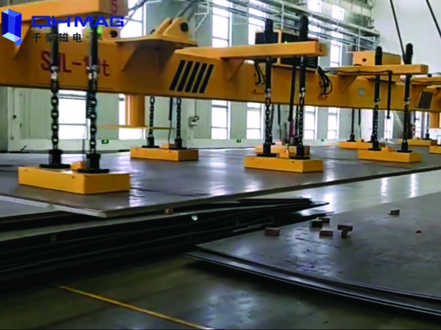 湖南千豪電磁起重器適用于船舶、建筑機械、汽車等行業(yè)的常溫鋼板起重運輸。 鋼板磁力吊為實現(xiàn)鋼板自動化搬運吊裝發(fā)揮了不可替代的作用。本案例中的鋼板電永磁起重器,由前后兩排共10臺小型電永磁鐵組成,從下面視頻可以看出鋼板吊裝平穩(wěn)、安全,輕輕松松實現(xiàn)8個毫米厚的長鋼板吊運。